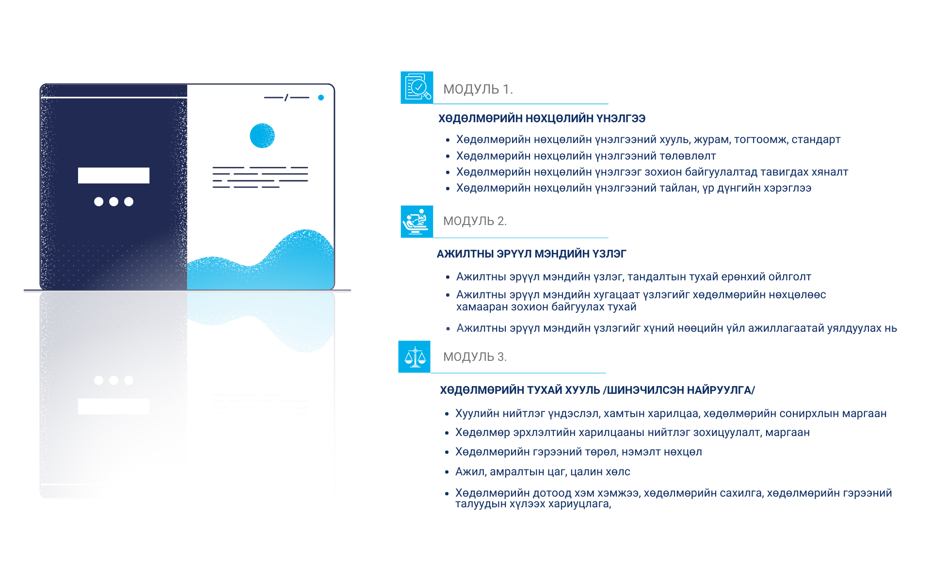 Байгууллагын удирдлага, хүний нөөцийн мэргэжилтнүүдэд хөдөлмөрийн нөхцөлийн үнэлгээ, ажилчдын эрүүл мэндийн үзлэгийг зохион байгуулахтай холбоотой хууль эрх зүйн болон хөдөлмөрийн эрүүл ахуйн мэргэжлийн мэдлэг олгох, нийтлэг тохиолддог асуудад зөвлөгөө өгөх зорилготой.